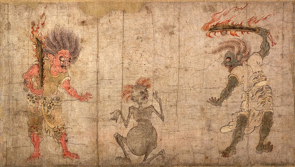【施餓鬼法】不空訳『救抜焔口陀羅尼経』に基づく修法で、池の畔、樹木の下などの静かな場所で東方に向かい3尺以下の壇を儲けて修する。陀羅尼と五如来(宝勝・妙色身・甘露王・広博身・離怖畏)の名号念誦の加持力によって餓鬼の罪障を滅し、飢渇を除き、天人道や浄土へと往生させる。なお餓鬼は夜間に活動するとされるので、日没以降に行う。また吉祥木である桃・柳・石榴の側では行わない。本堂内陣では行わない。灯明をともさない。香華を供えない。鐘を鳴らさない。数珠を摺らない。声高に真言を唱えない。作法終了後は直ちに後ろを向いて振り返らない。など独特の禁忌のある作法を本義とする。これらの決まりは餓鬼が吉祥木や灯明、香華、鐘や数珠の音、大声や人の視線を嫌うことに由来する。このような施餓鬼法は密教系の修行道場では、行者の修行が円満に成就するようにと毎夜行われる。ただし中世以降は盂蘭盆行事等と習合したことで施餓鬼は日中に盛大に行われるようになり、上記のような禁忌のない作法が行われようになる。このような法会には餓鬼は直接列することができないので供養した食物は本義に従って水中や山野に投じて餓鬼等に施すのを常とする。施餓鬼は多大な功徳があるとして、その功徳を先祖へと回向する追善として行われるようになりこれらから盂蘭盆行事となっているが、両者は混同してはならないとされる。
